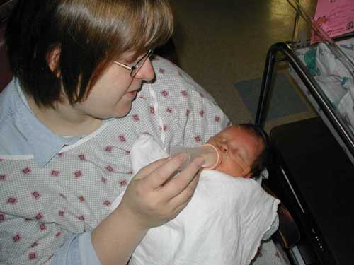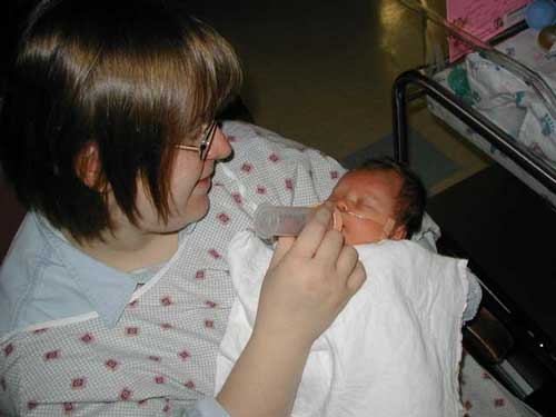 10:00 p.m. - We got to see Taylor in the Progressive Care unit of the NICU, and Elizabeth did get to feed her (see pictures). She didn't take all of her evening bottle, but finished a good portion of it. She is still needing a little bit of oxygen, though we have no way of knowing just how much of the oxygen supply she is actually using. In the next few days, we imagine the staff will be weaning her off of the oxygen assist. We remain excited, but still know it will be several days before we can bring her home.