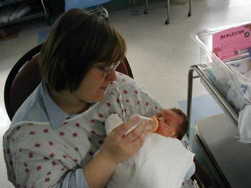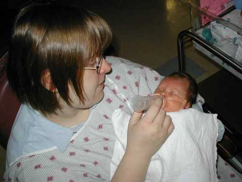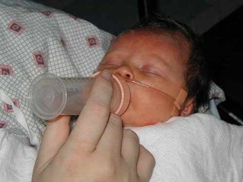 Taylor and Elizabeth had their first attempt at breast-feeding, and considering it was her first attempt, all went well. Taylor is still eating a good bit (50-60cc per feeding, roughly every 4 hours) and is gaining weight again. If we can take her home Monday, it will be Brian's best birthday present ever.