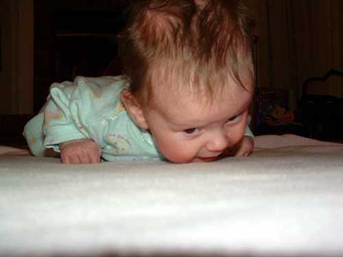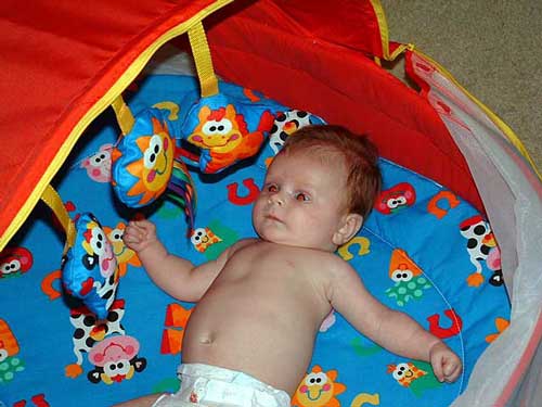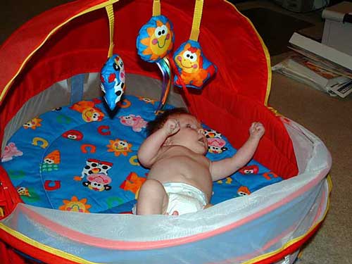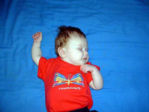 Here we have Taylor in one of her daddy's favorite outfit (Beautiful Butterfly), playing in her Bounce-n-Play and practicing sitting up.