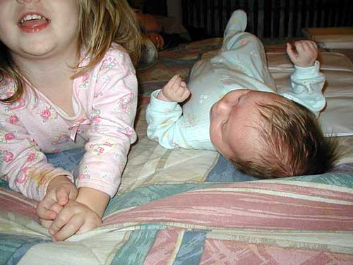 On Sunday March 9, Uncle Mike and Aunt Bev threw a get-together for a variety of reasons, which gave Taylor the opportunity to meet the rest of her Ardmore cousins. Ariel and Amy found Taylor playing on the bed, and joined in the party.