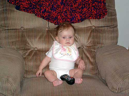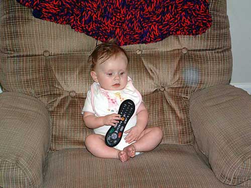 Taylor loves her TiVo. It's very tasty. Mommy and Daddy love their TiVo too, but haven't tasted the remote yet.
