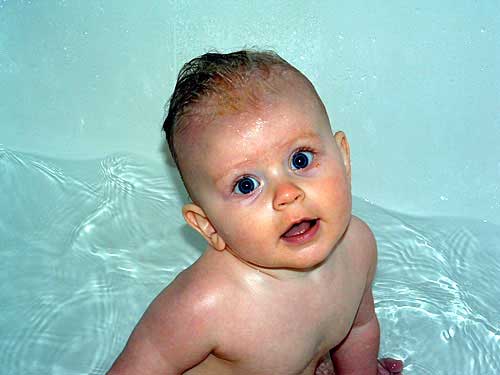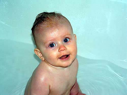 Taylor has ditched her rubber ducky tub in favor of The Big Tub! Much like the swimming pool, Taylor loves to splash in the big tub. In other news, we're expecting a big growth spurt any time now - Taylor has started eating more. And more. And more. We're up to solids 3 times a day now, including a jar of vegetables at each meal, plus several bottles.