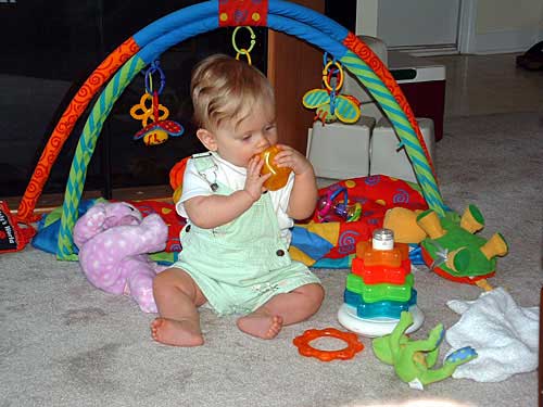 Well, there are several Taylor stories to include. She's currently in a Mother's Day Out program twice a week and is enjoying that (of course, they love her). We went to Atlanta this past weekend for the Babies R Us baby fair and had a good time visiting with godparents, Ja & Christy. While there, Taylor had her first taste of cotton candy (a little itty bitty bit!) - she liked it and probably would've gladly taken another taste. She also had her first taste of ice cream. Daddy offered his to her, she stuck her mouth on it and got the most godawful look on her face. I didn't understand why she wouldn't like it until I heard what flavor it was. Unbeknownst to me, he had gotten rum flavored ice cream. No wonder she didn't like it! (disclaimer: There was NO actual rum in the ice cream)