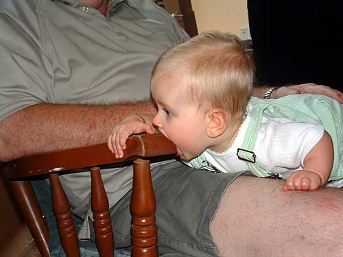 In other news, Tuesday night was a very difficult night. Taylor is cutting at least 3 top teeth at the same time. She woke up every hour or so crying from teething pain. Wednesday night, and she's back to sleeping through the night with no trouble.
