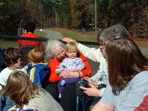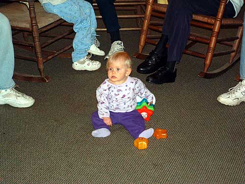 We introduced Taylor to Camp McDowell this weekend, at the Holy Apostles annual parish retreat. She survived midnight parties and rooms full of rocking chairs, and by Sunday morning was introducing herself to other parents and grandparents, and enjoying the ride and listening to Chloe the Cow on her first hayride.