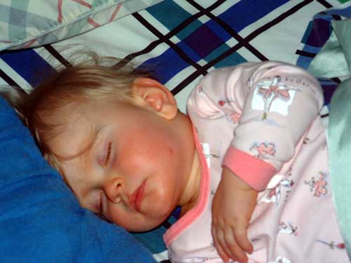 And this one was taken this morning. This sleeping position is entirely too cute and I decided to risk having the flash wake her up. It didn't.