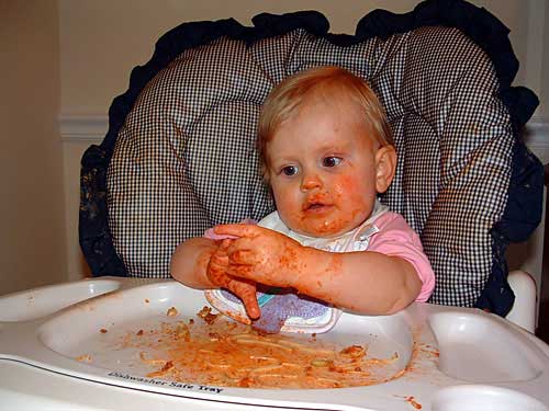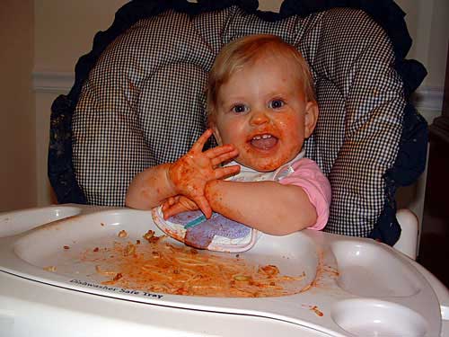 No, this isn't turning into the "What Did Taylor Have for Dinner" blog, but tonight's was just too cute to not share. Tonight she had some of our spaghetti, and yes, she really did have as much fun with it as it looks like.