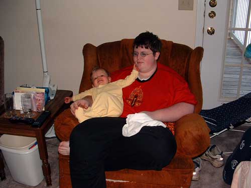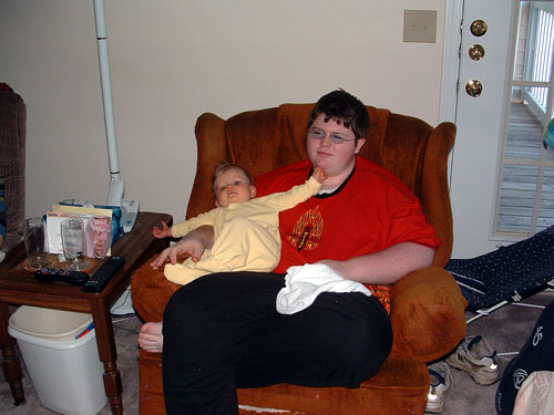 The weekend of Oct 19th, we had a visit from Uncle Phil, Aunt Leslie and cousin Adam. Even though Adam didn't want to, we made him hold Taylor. As he learned, she didn't break and she didn't spit up on him or swipe his glasses.