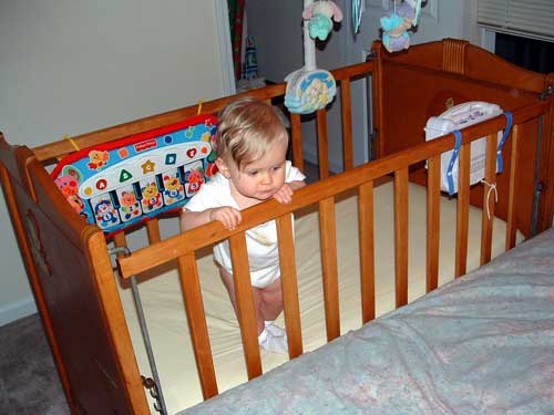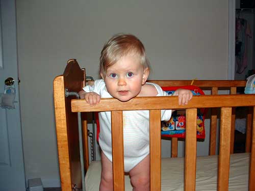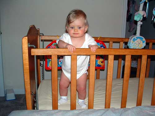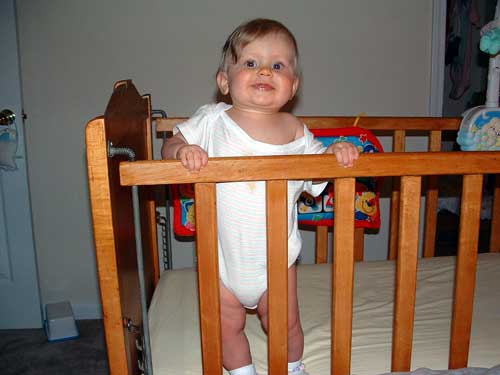 Also, it's now a common occurrence to walk in her room and see her standing there smiling at you. It makes you forget that she was *supposed* to be asleep. :)