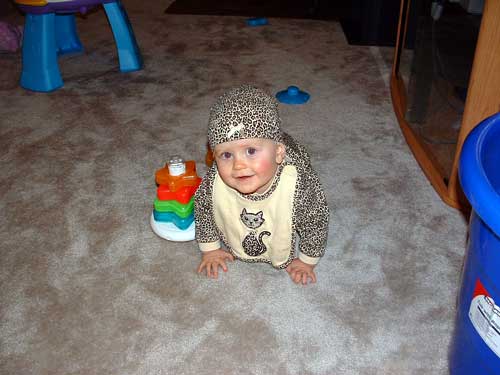 And, last but not least, a couple of pictures from Halloween! Well, a couple days before Halloween. There was a party at the apartment's clubhouse and we went. Again, entirely too cute! Oh yeah, Brian picked out the outfit. :)