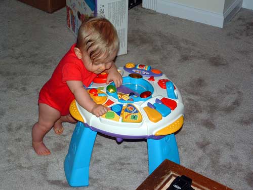 Taken October 12th - Taylor with her new activity table. This is the one that she and Rylee were pushing around the room while they were playing with it last week.