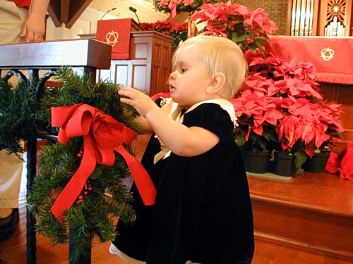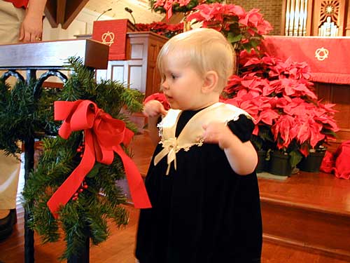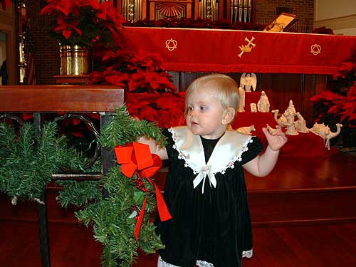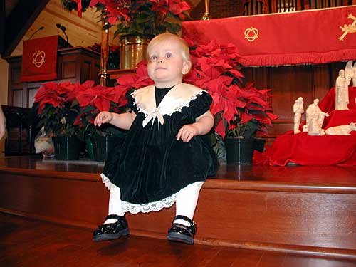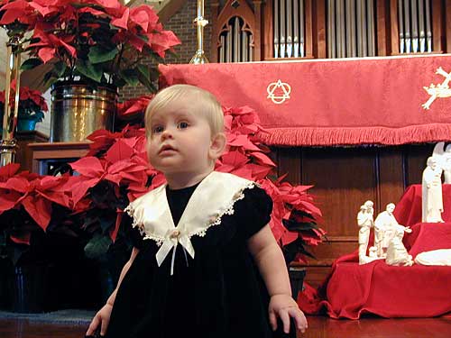 December 28: Taylor at St. Stephen's in her Christmas dress.