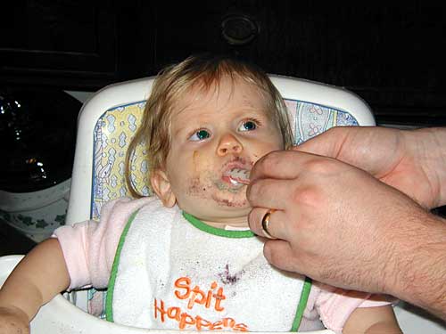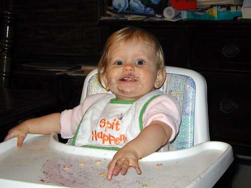 Taylor had a stomach bug so she didn't get to eat everything we did. We did give her turkey, though, and she liked it. I was also a little disappointed because the bib I got her (Food then Football) didn't fit over her head - it was like a t-shirt top. Anyway, the first pic is early in the meal. The next two are when she was pretty much done and, as you can tell, she's very very very sleepy (turkey does it everytime!)