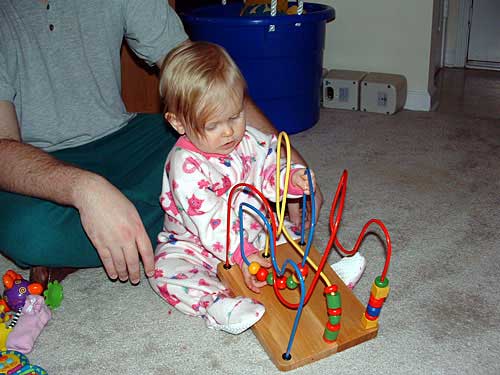 While I'm typing this, Taylor is trying to put the lid to her shape sorter IN the shape sorter. Needless to say, it won't fit. And she's getting mad. The fact that it plays a cute little song when she puts the lid on doesn't seem to help matters.
