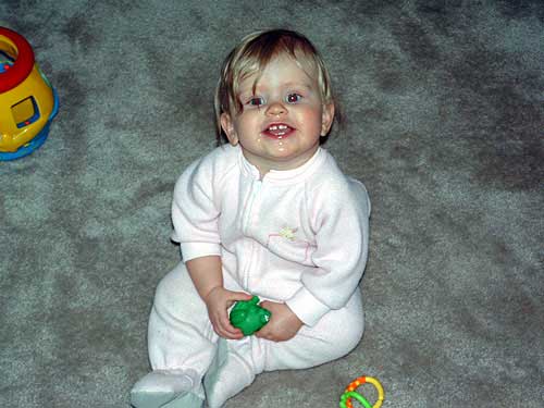 This last picture was taken before Thanksgiving. I bought her a ball sometime in October and she absolutely hated it. She would scream if it came anywhere near her. Now, she enjoys playing with it but gets frustrated when she grabs for it and it rolls away. *snicker*