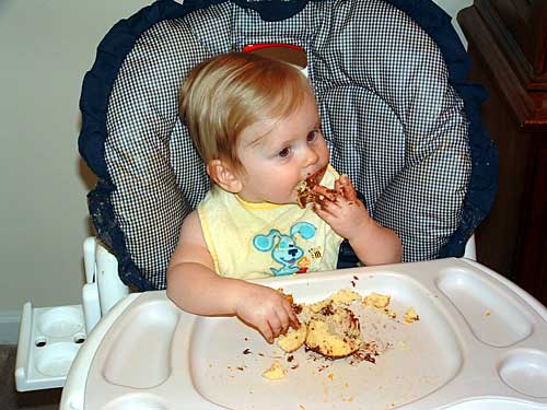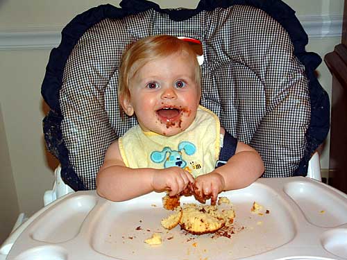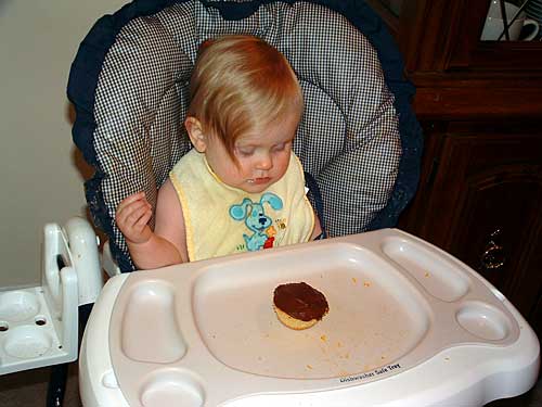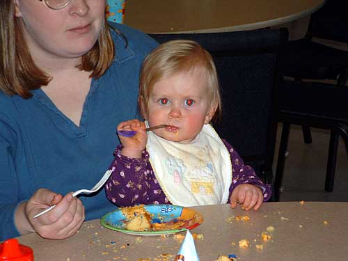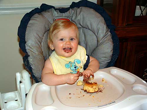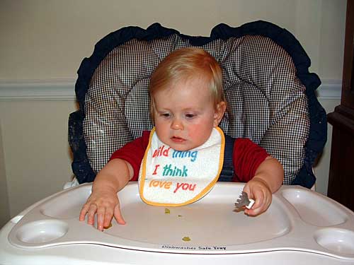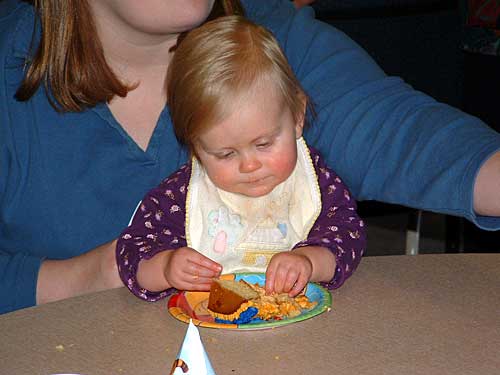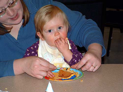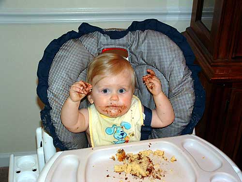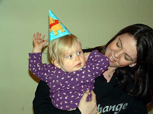 She has her 1 year follow-up with Early Intervention today. She's been "seeing" a speech therapist once a month. I say "seeing" because we haven't really done anything but monitor her. For those who don't know, speech therapy for one this young focuses mostly on eating problems (muscles for eating are the same ones used for talking) but, beyond that, I think all they can do it monitor. Taylor was having difficulty with level 3 foods but that fixed itself when we just went ahead and switched her to table food. Anyway, as soon as I know results of today's visit, I'll be posting it.