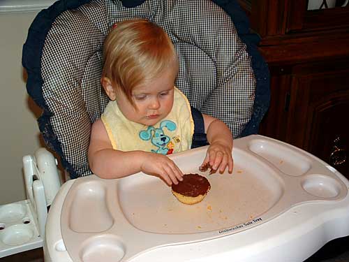 As promised! After dinner Wednesday night Taylor got her birthday cupcake, and we let her go to town. She nearly ate the whole thing.
