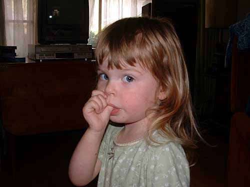 Ariel poses by herself. That sure is one tasty thumb.