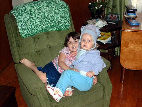 Amy and Taylor hog the recliner to themselves