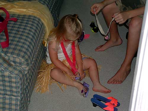 Alyssa brought over some of her old dress-up clothes, and Taylor went to town.