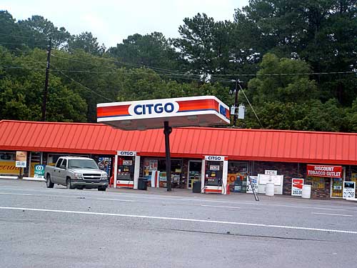 The canopy at the Citgo gas station down the street. Amazingly, to this day, it's still this bent. Even more amazingly, people pull under it every day. I sure wouldn't.