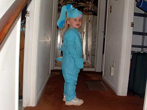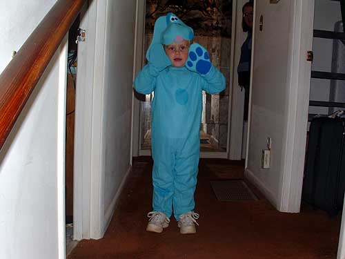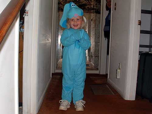 To celebrate Halloween, here's Taylor in her Blue's Clues costume, ready to hit the streets in search of "candy tweats"
