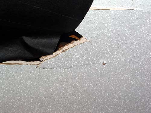 Update: It's in our bedroom. Contractor called it a "minor" hole - in the grand scheme of things this is a minor hole. I guess in the world of home repair, a "major" hole would be the one that opens up in the ground and swallows the house whole.