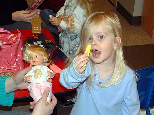 See Daddy? It's not hard to comb out tangles.