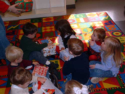The class eagerly awaits the gift exchange.