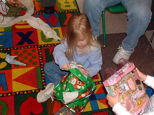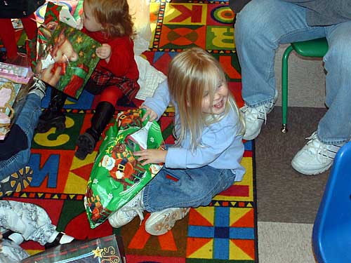 Enough cameras. Let's get with the presents! Taylor (not so) patiently awaits her turn.