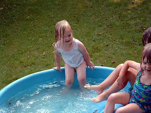 Taylor & Ariel weren’t too crazy about the sprinkler. Abby and Amy hogged the sprinkler while the younger girls entertained themselves in the pool. Worked out for everyone.