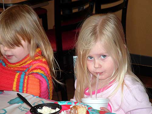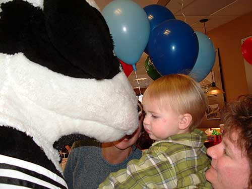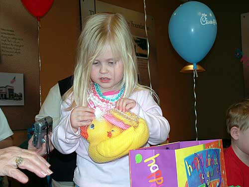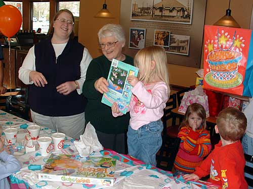The party went off very well. Mimi and Papa drove up Friday for the weekend, godparents Ja and Christy zipped over from Atlanta for part of the weekend, and Cousin Ariel got to come down Saturday morning to spend the day and night with us.